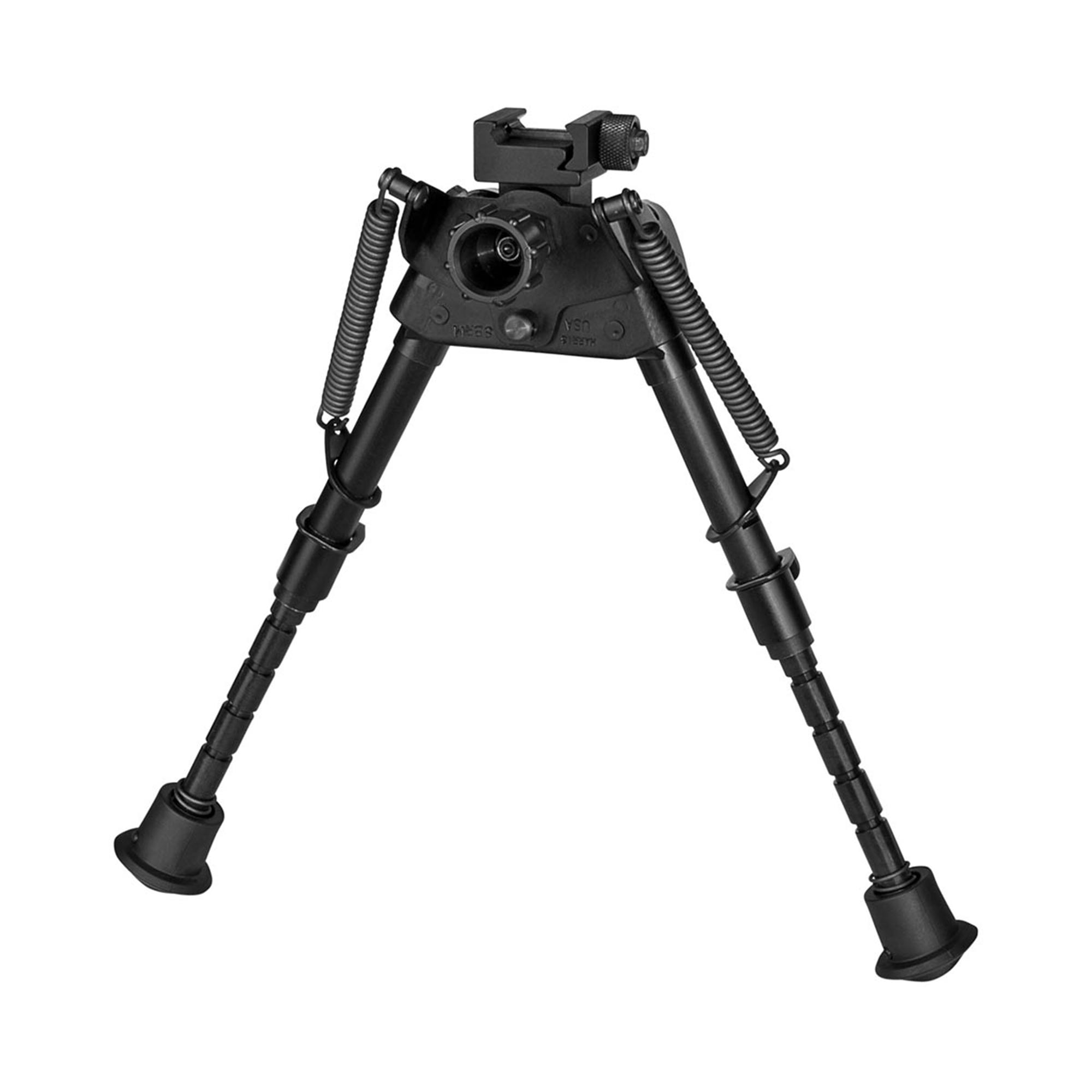 Acest model de bipod (S-BRMP) este fabricat pentru a se prinde pe șine Picatinny. Atașarea pe șină și detașarea nu sunt de tip QD (detașare rapidă) și presupun acționarea unui șurub care, însă, se face cu mâna, fără a necesita unelte.